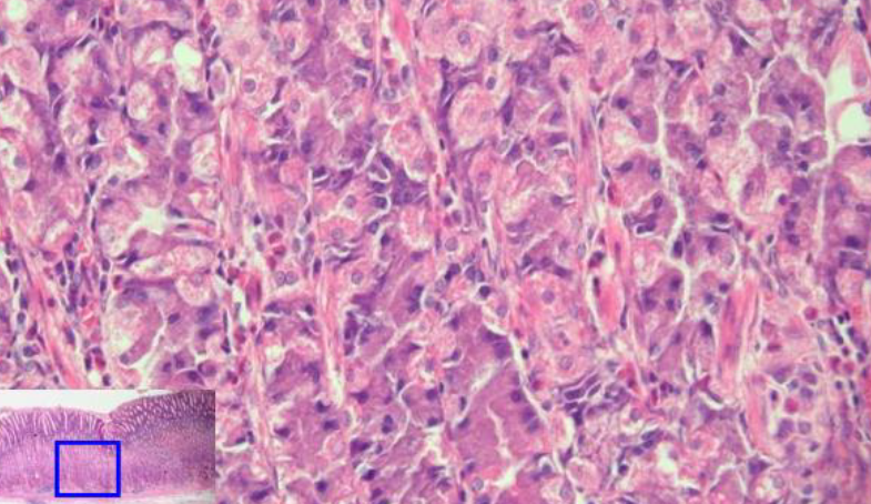 主細胞(Chief cell):藍紫色細胞,分泌蛋白酶。