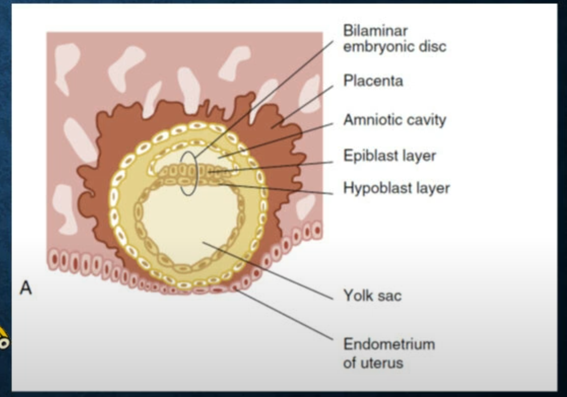 分化成羊膜腔(amniotic cavity)與卵黃囊(yolk sac):