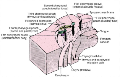 若未消失會與甲狀舌管連在一起,形成甲狀舌管囊腫 (thyroglossal duct cyst)