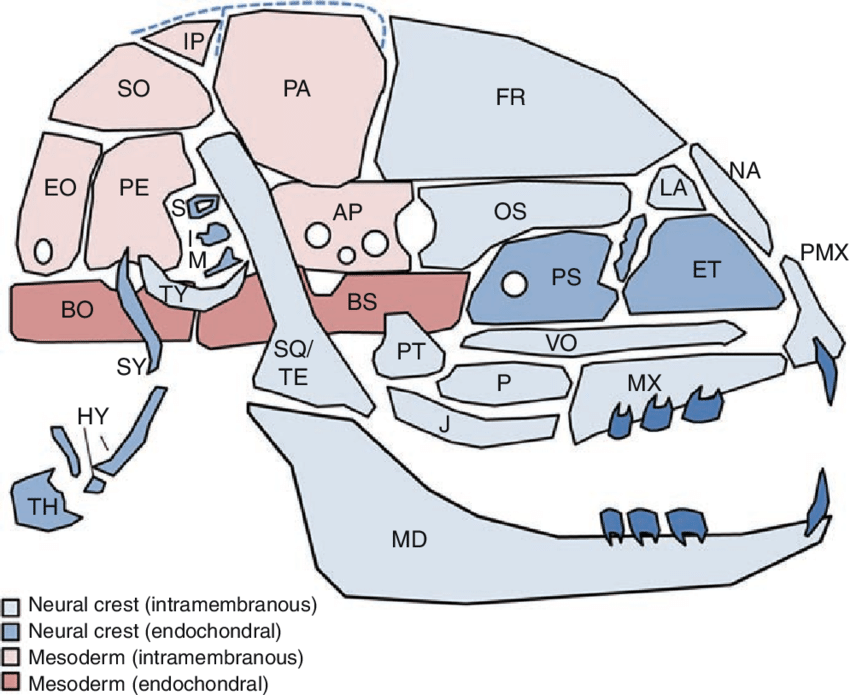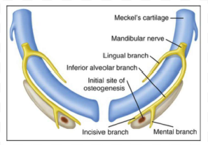 Mandible 是 Meckel’s cartilage 旁邊的間質組織所形成的膜內骨化產生