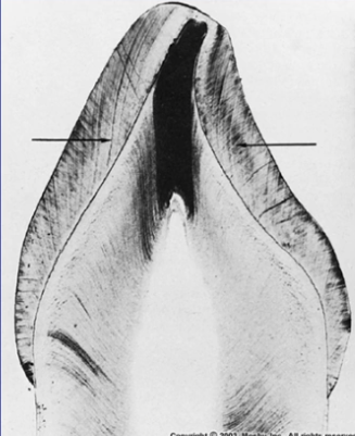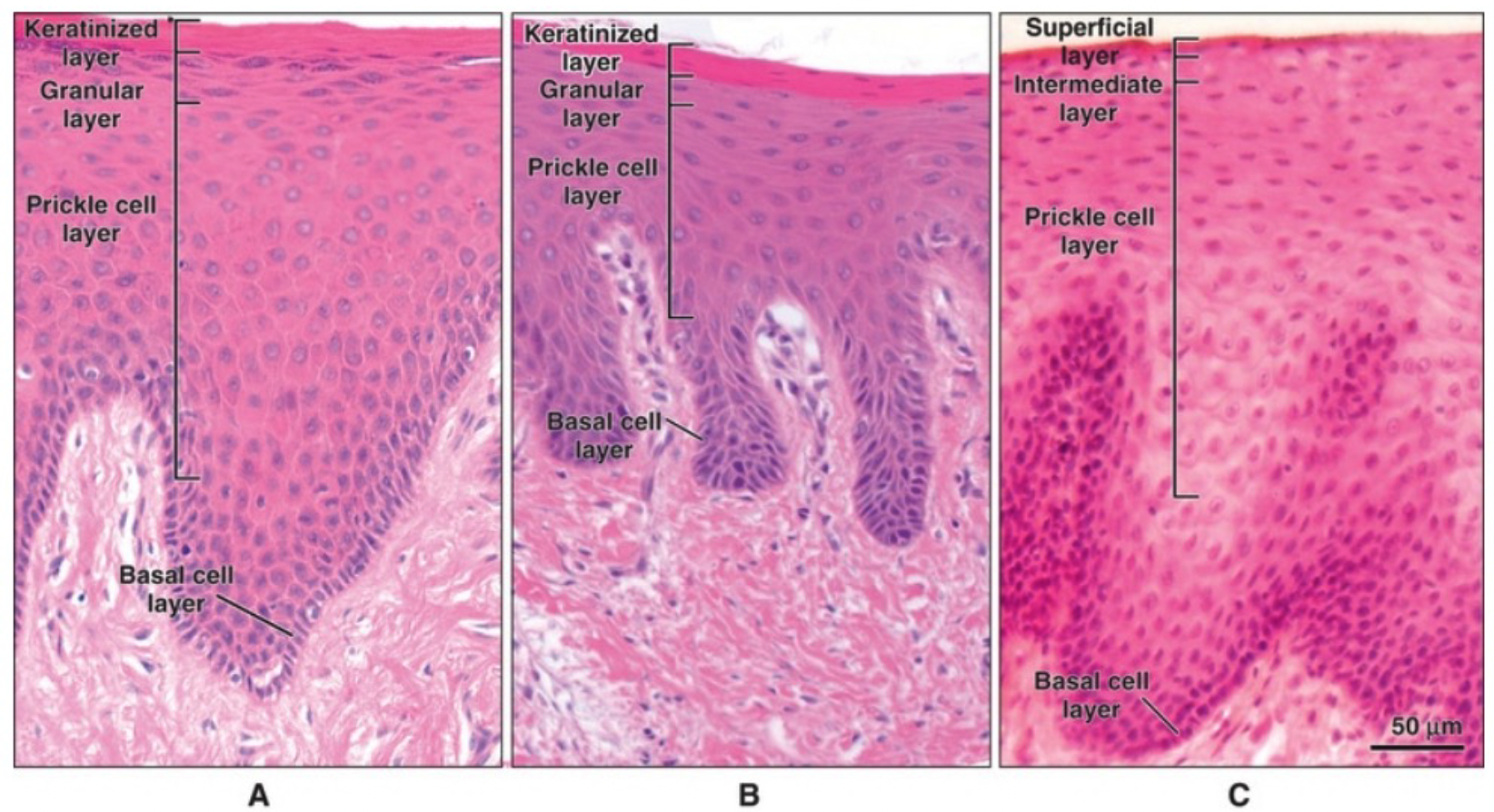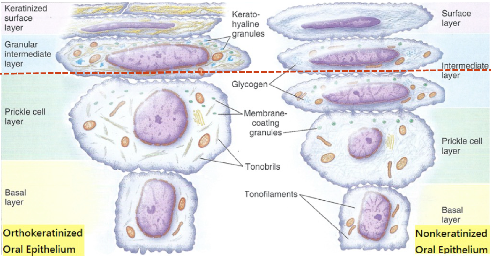 Vermillon zone(唇紅區), Intermediate zone 有角質化,無附屬構造