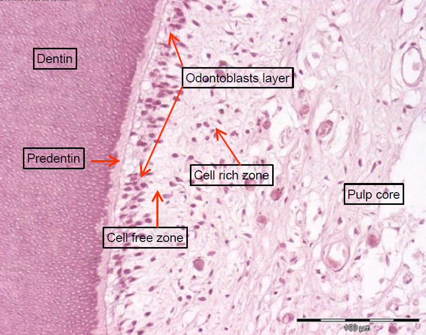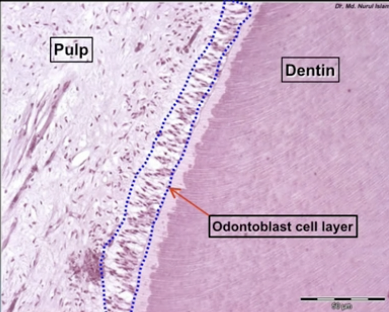 ec[ectomesenchymal cell]-->po[preodontoblasts]-->d[dentin]
