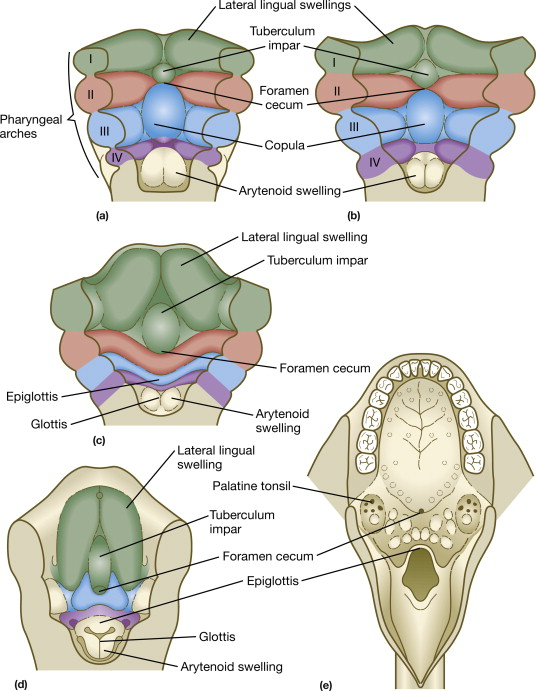 Arch 2,3,4 mesenchyme → \rightarrow → 舌根