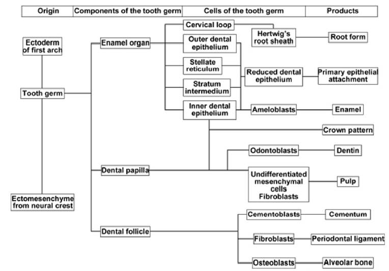 除了Enamel來自表皮其餘都是來自ectomesenchyme