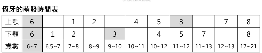 crown completed ⟶ 3 y e a r \mathop{\longrightarrow}\limits^{3year} ⟶ 3 ye a r time of emergence ⟶ 3 y e a r \mathop{\longrightarrow}\limits^{3year} ⟶ 3 ye a r root completed