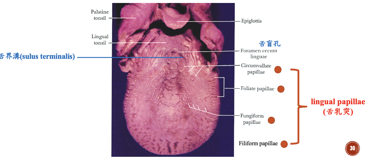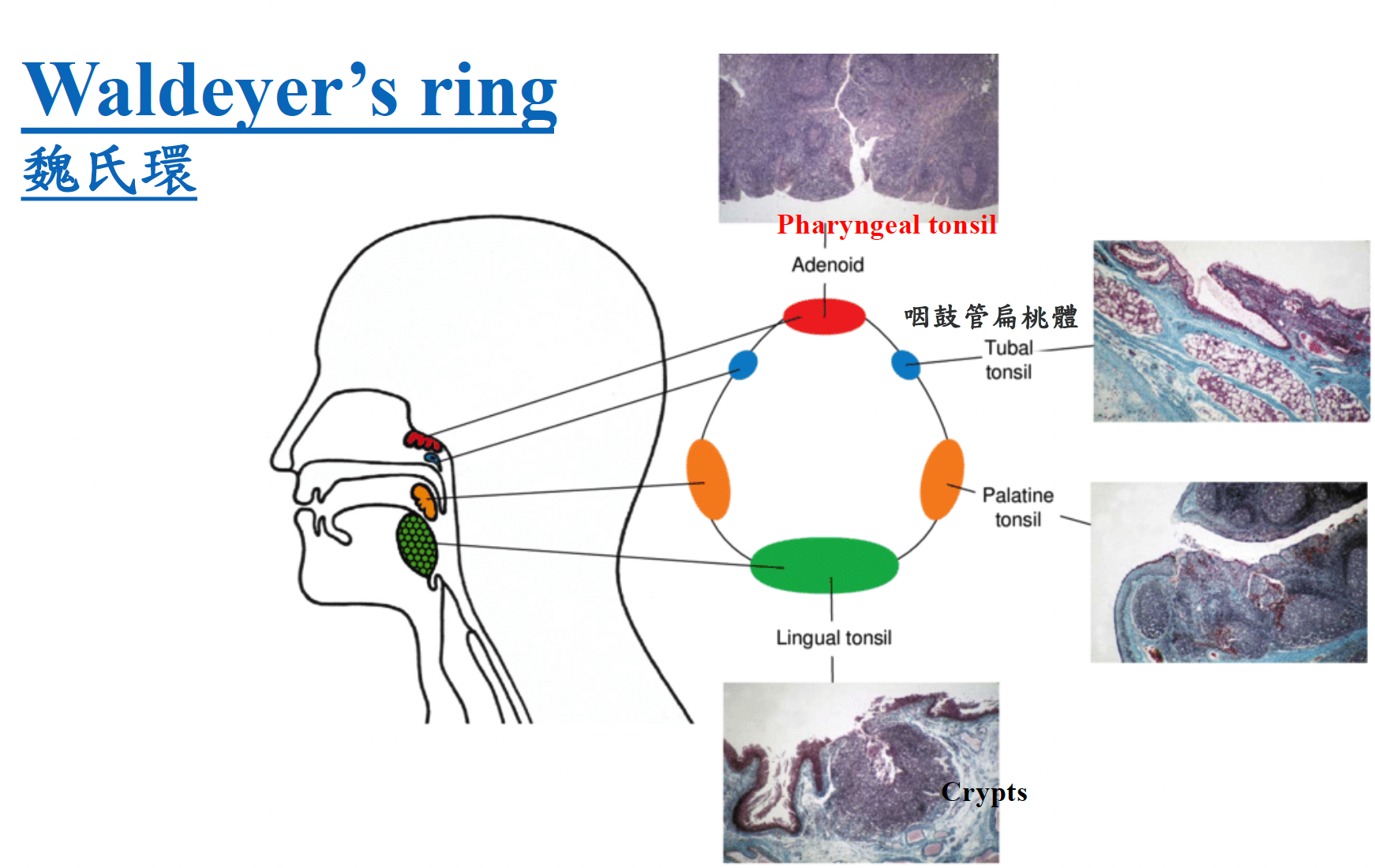 舌後1/3的淋巴組織,許多舌濾泡組成