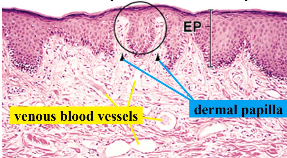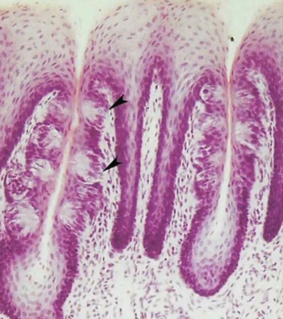 上皮變得更薄,上皮和結締組織的接觸面變平