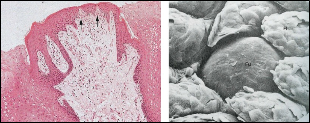 絲狀乳突數量減少,葉狀乳突可增生,此時飲食中如缺乏維生素B等營養成分,則上述變化更明顯