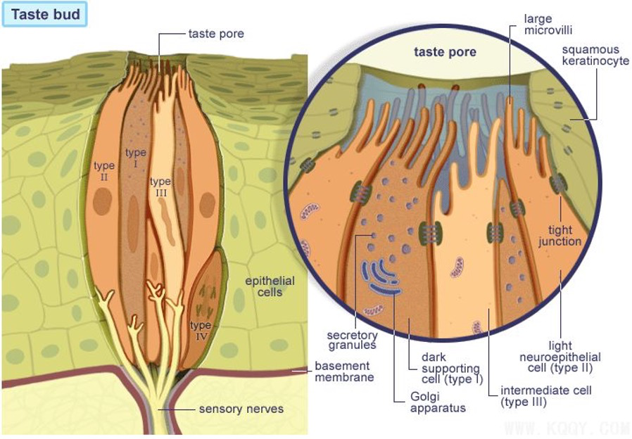 神經末梢的密度降低,味蕾數量減少,黏膜感覺功能下降
