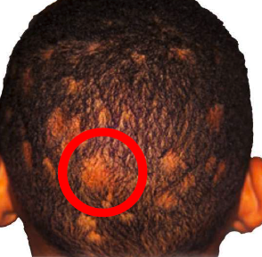 Spot on the scalp